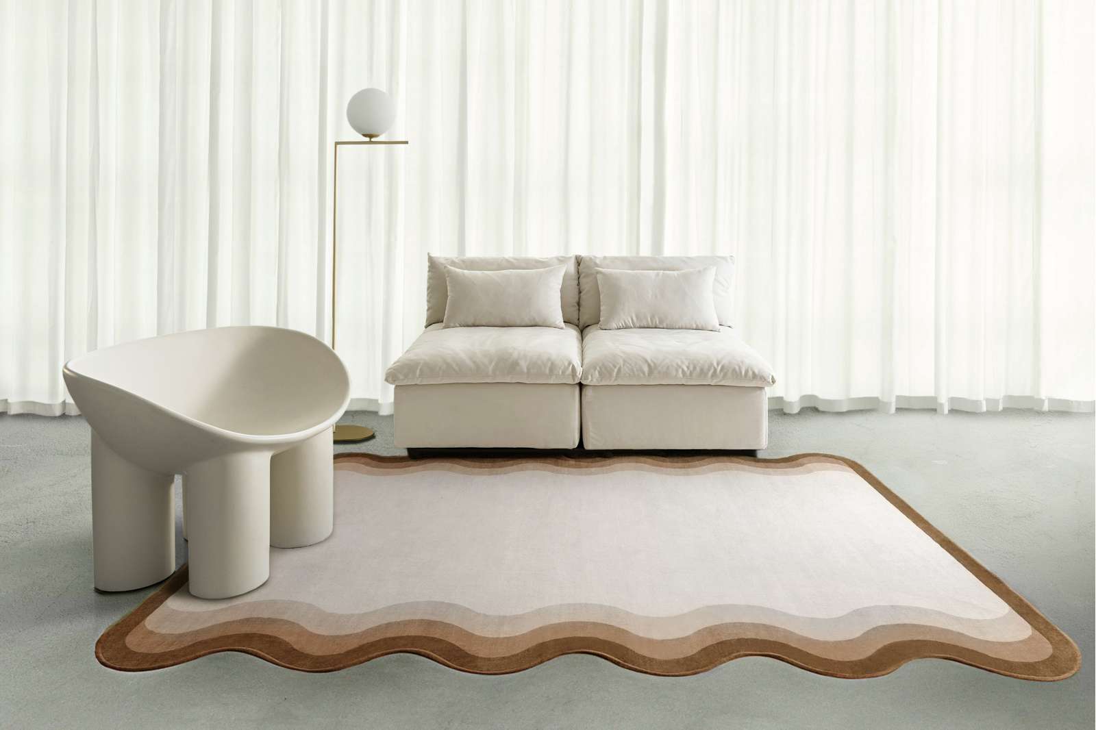 With its flowing, waved silhouette and warm neutral palette, Matera brings a sense of softness and design-led sophistication to any space. The unique curved edging creates a playful, elevated look, perfect for bedrooms, nurseries, or interiors styled with organic forms and earthy tones.