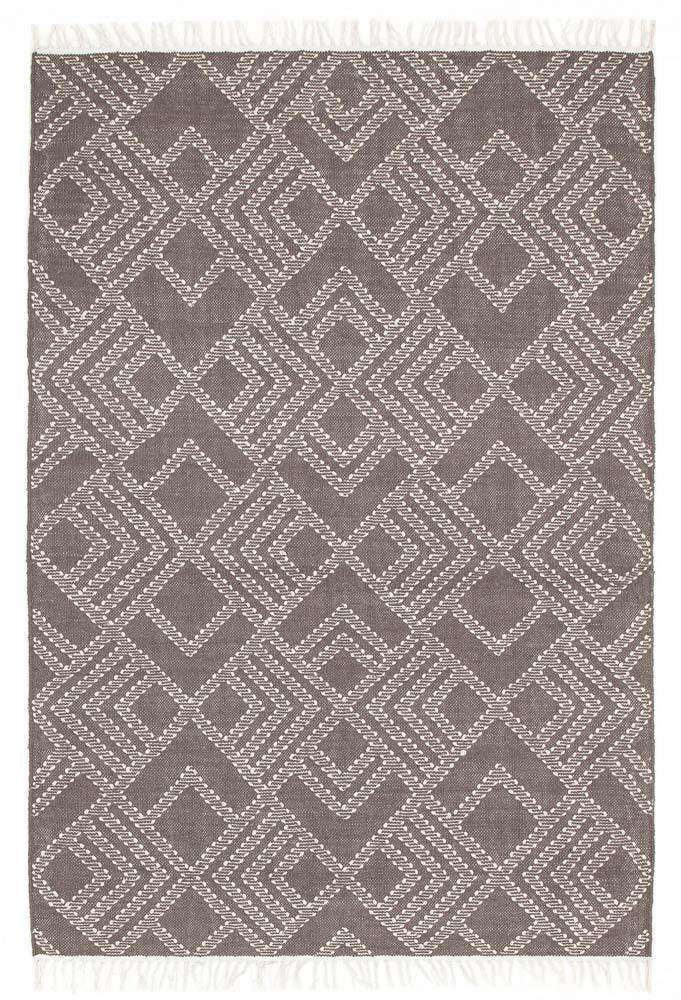 The Denver Warm Grey Wool Rug was handmade by skilled artisans on a traditional style loom with a lightweight, flatweave construction.