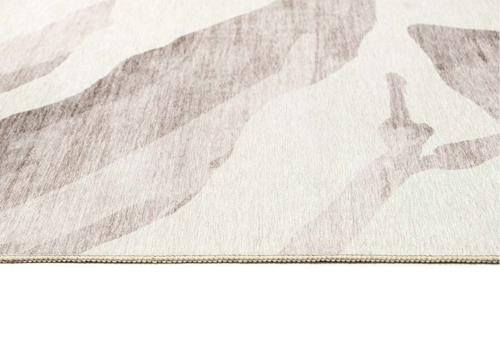 Bainbridge is a soft cream indoor outdoor rug featuring an oversized leaf silhouette in subtle tonal shades.