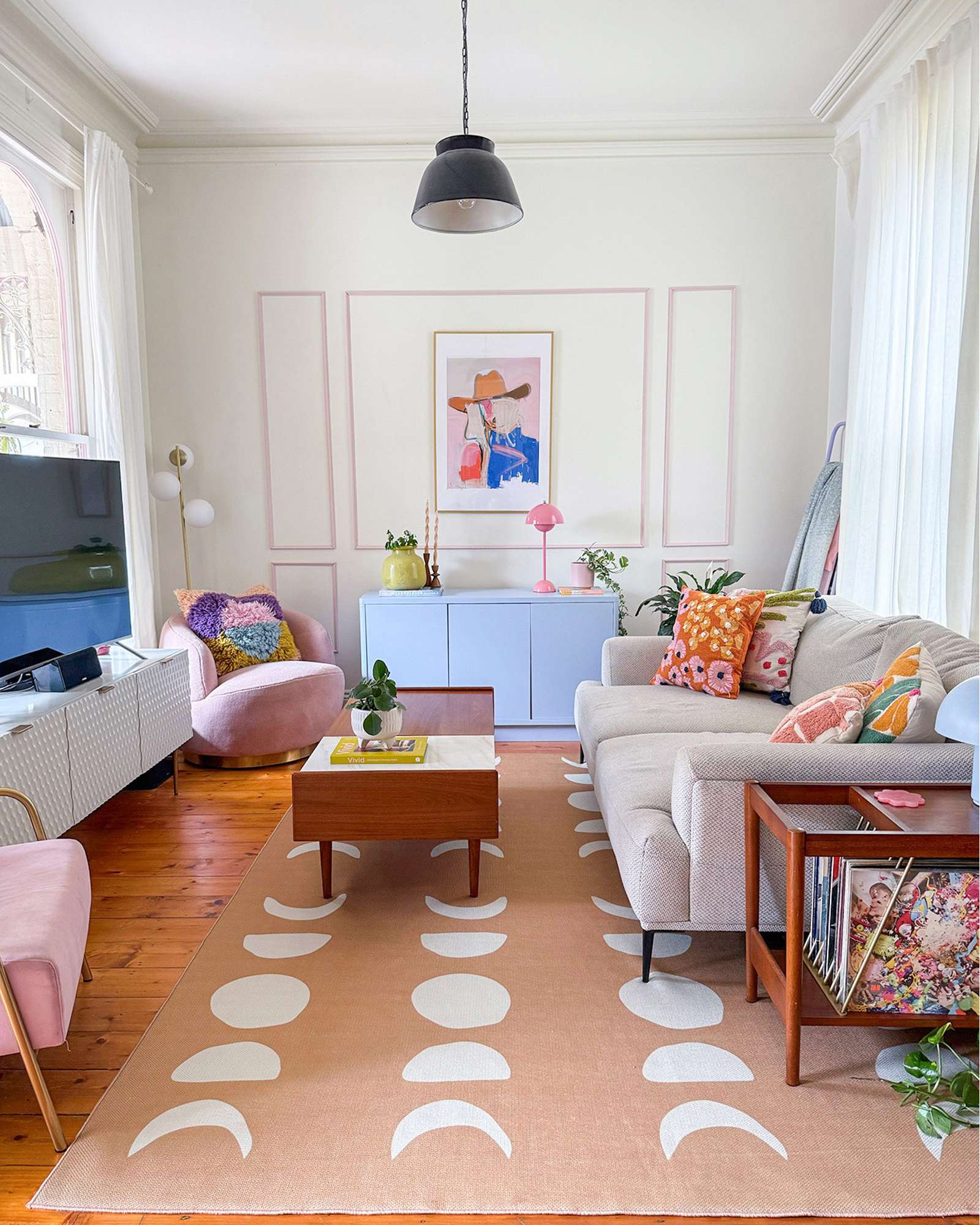 Whether styled on the deck, in a playroom, or under the dining table, Barani adds a grounded, graphic element to any space.
