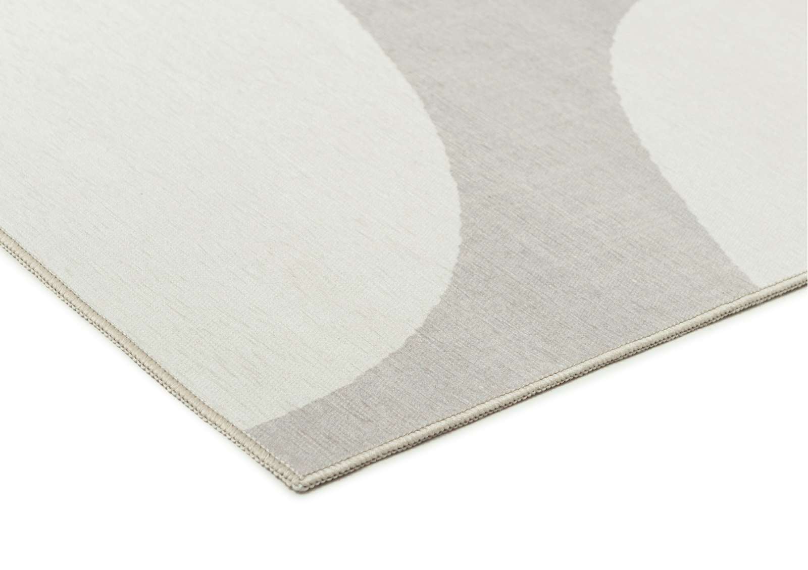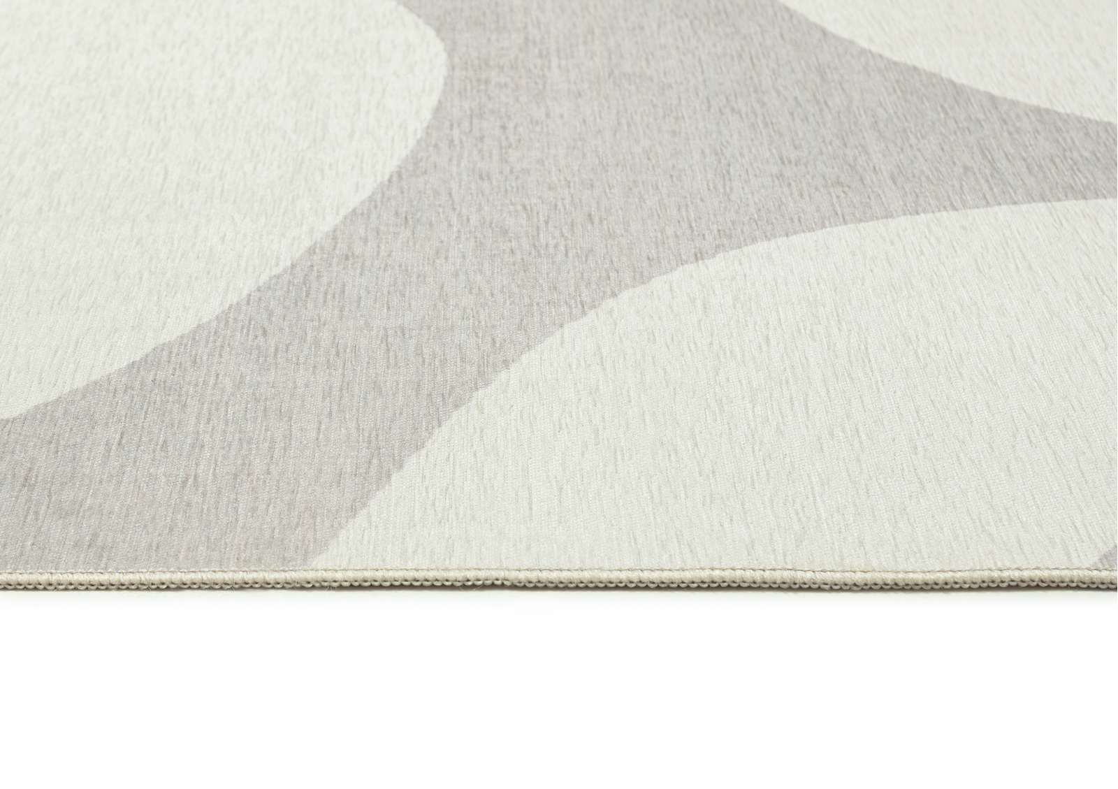 Whidbey is a modern indoor outdoor rug in soft tonal stone hues, featuring an abstract organic pattern inspired by natural forms and movement.