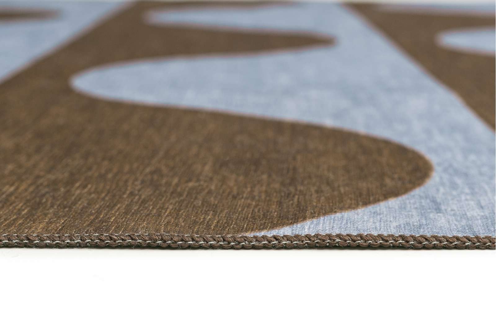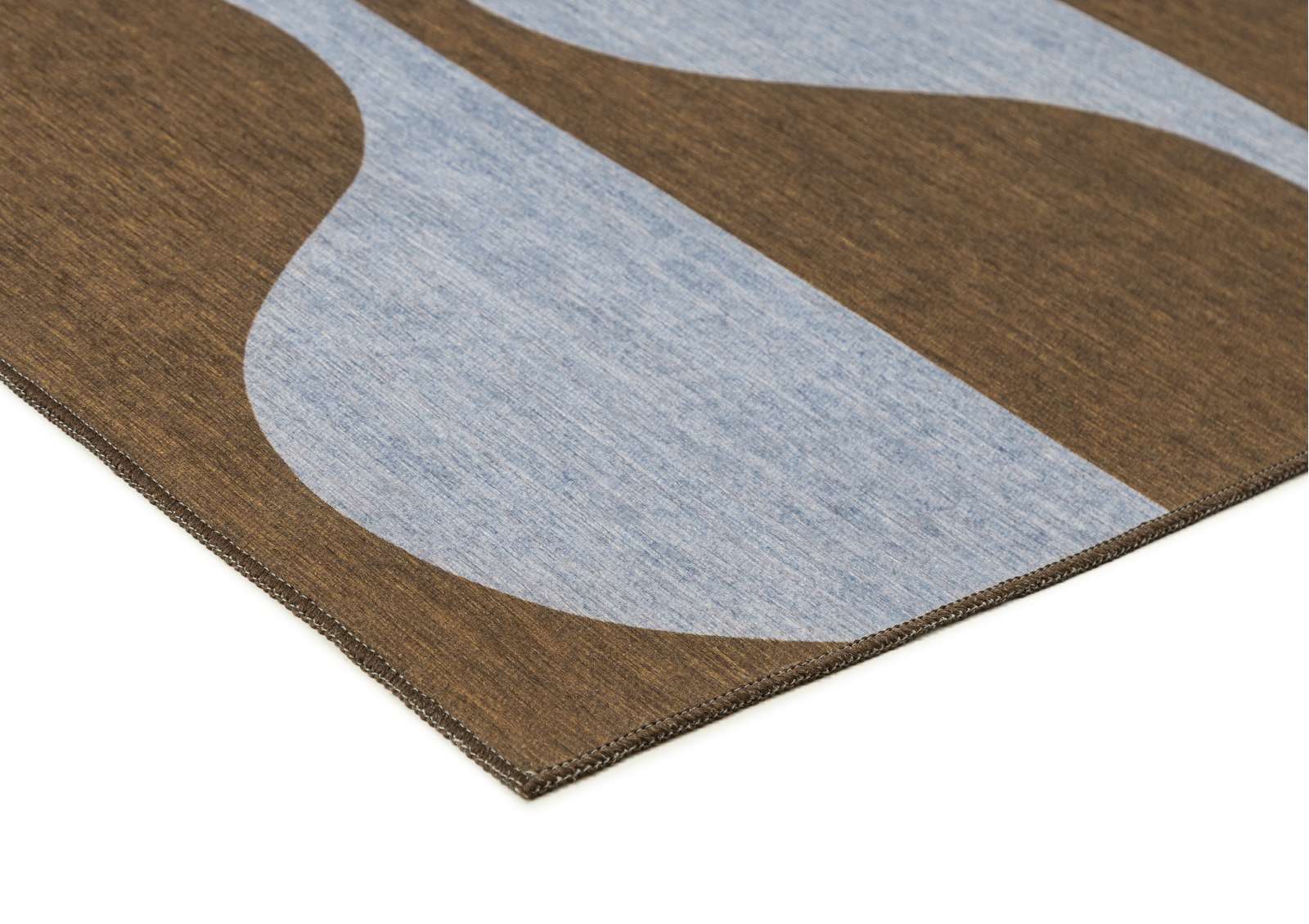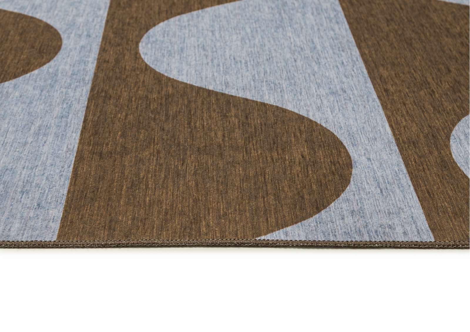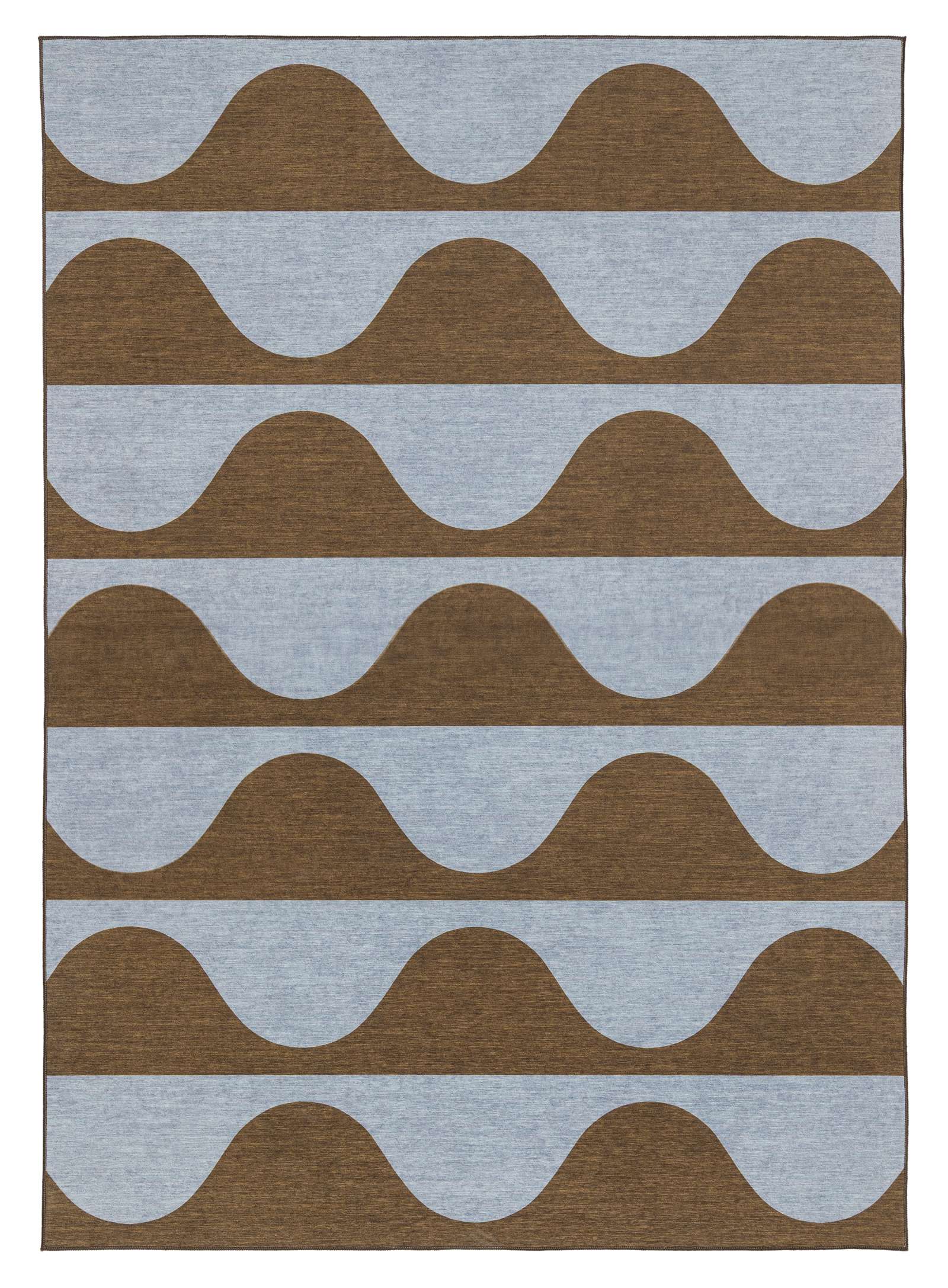 Allapattah is a striking brown and blue indoor outdoor rug featuring a bold wave stripe pattern that plays with rhythm and contrast.