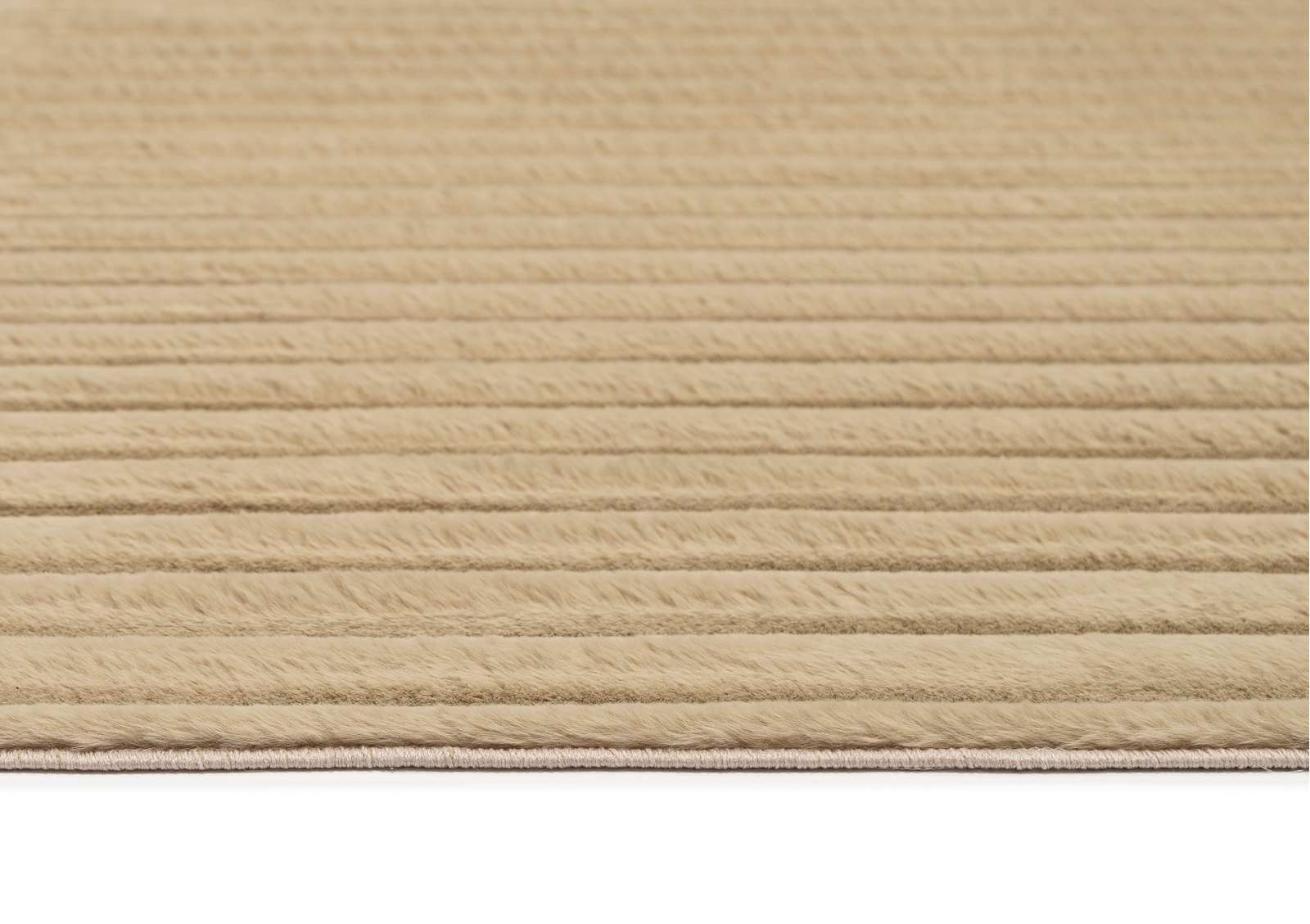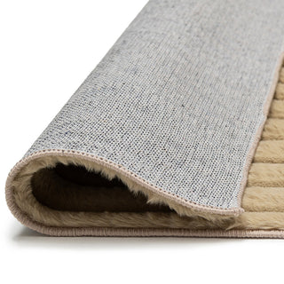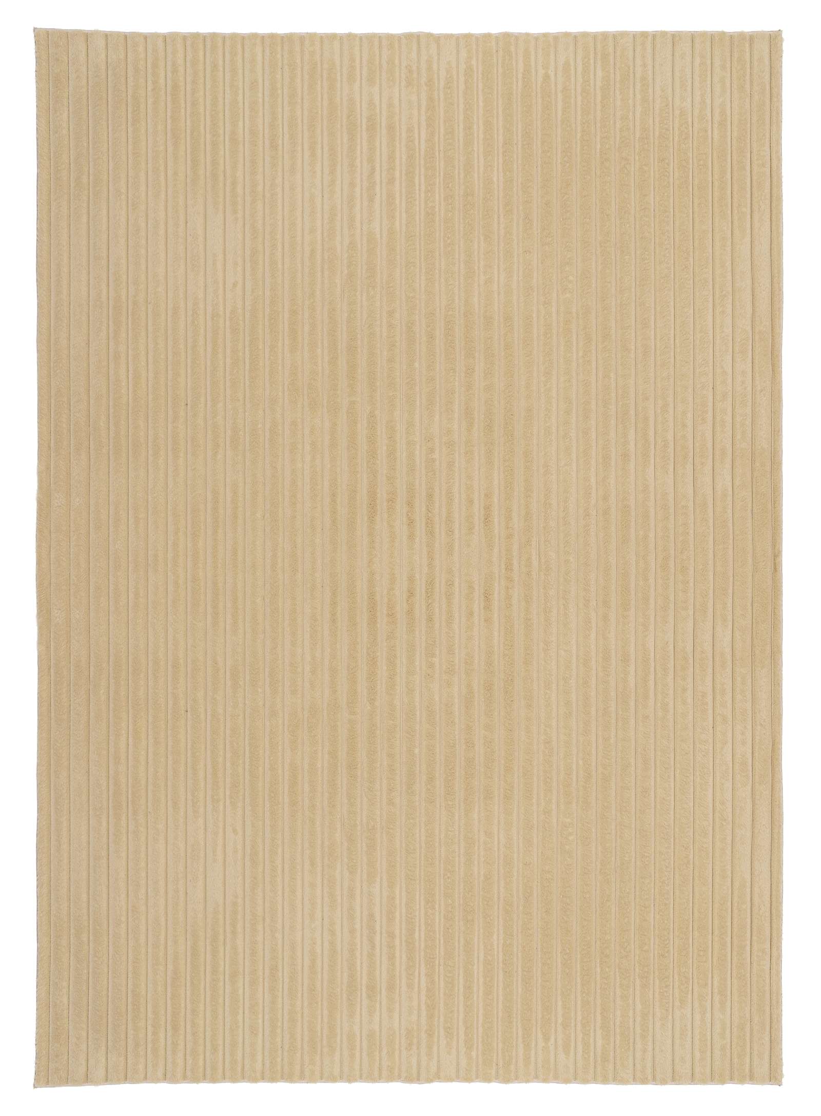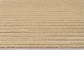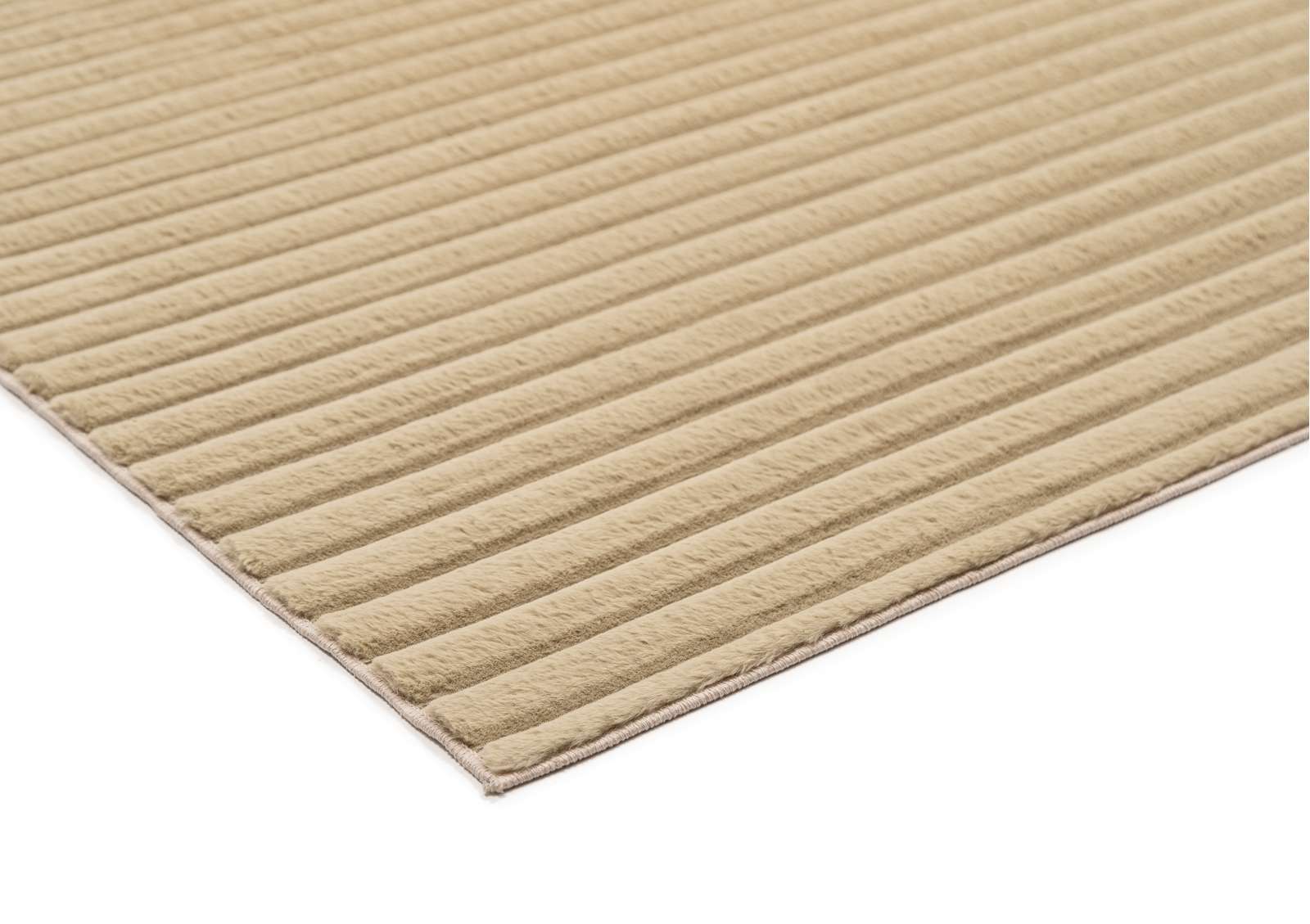 Introducing Hirafu, a soft and stylish machine washable rug featuring a sophisticated vertical striped pattern in a neutral beige-brown tone.