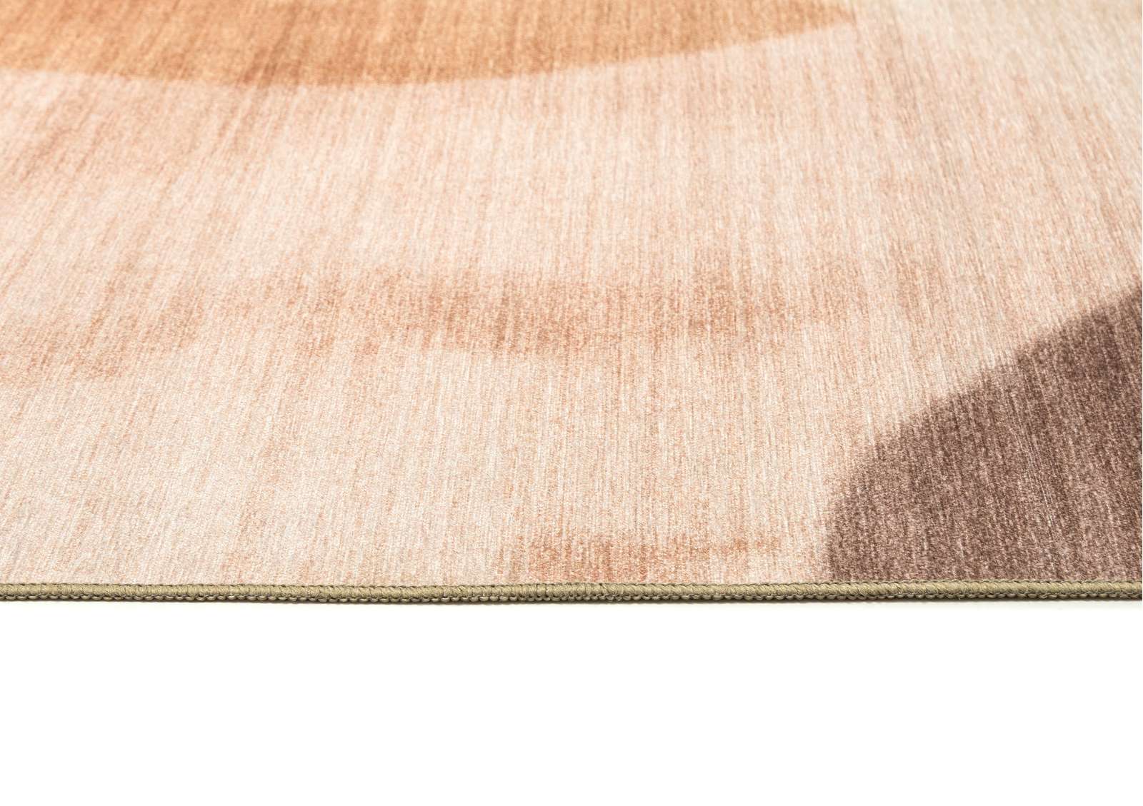 Camas is a soft blush-toned indoor outdoor rug featuring a fluid abstract design in a blend of warm blush, peach, and beige hues.