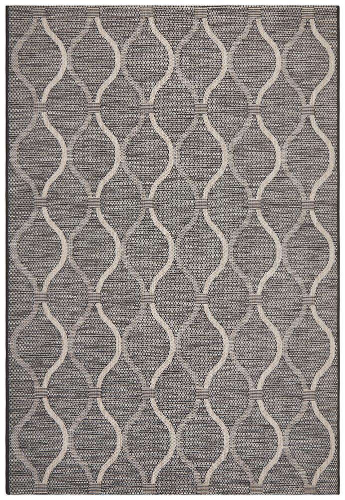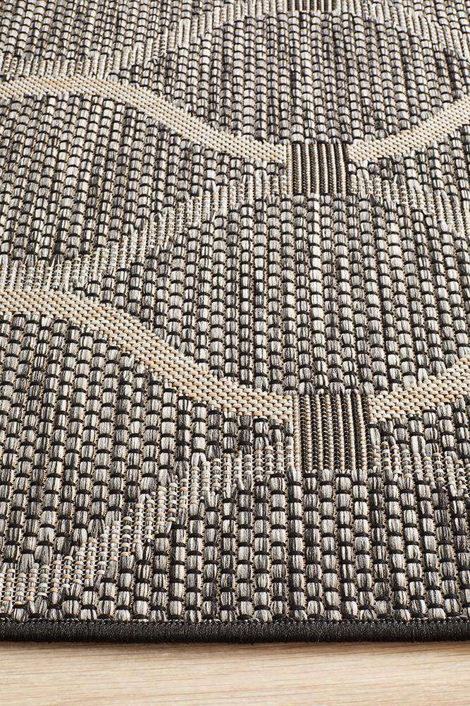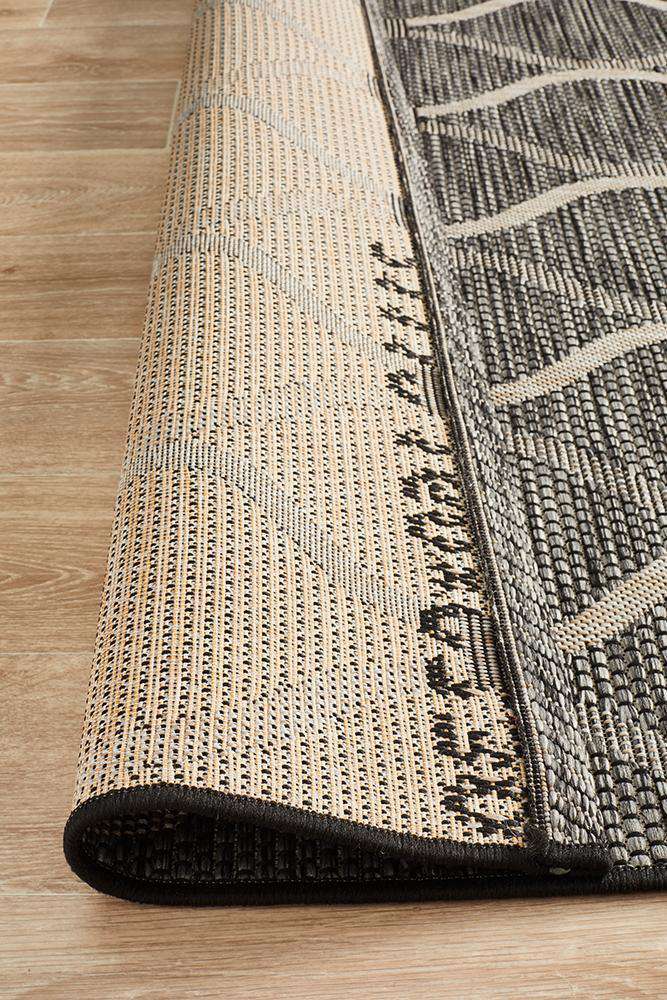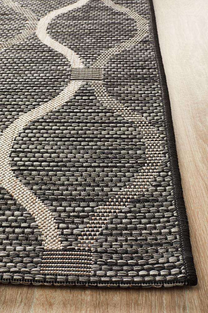The Kavala Indoor/Outdoor rug in black is the perfect decorating choice to impart texture and style onto your deck, porch or even inside your home.