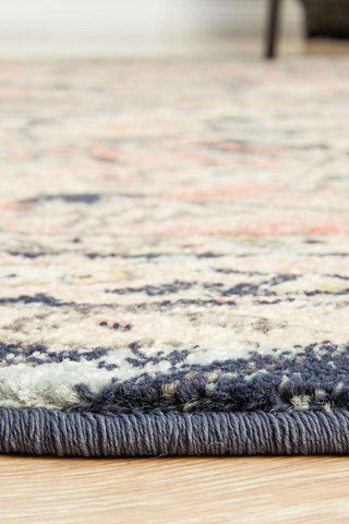 Transform your home with our Ayda Transitional Round Rug. Featuring a flamboyant oversized diamond emblem, decorative floral arrangements and secured serge edges which gives a Bohemian inspired theme.