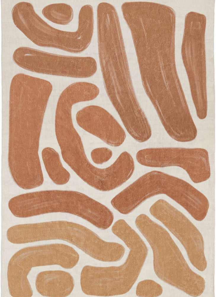 Bring modern art to your floor with the Ottawa Yellow Brown Abstract Washable Rug. Featuring freeform shapes in warm yellow and brown tones on a soft neutral base, it adds an earthy yet contemporary feel to any space.