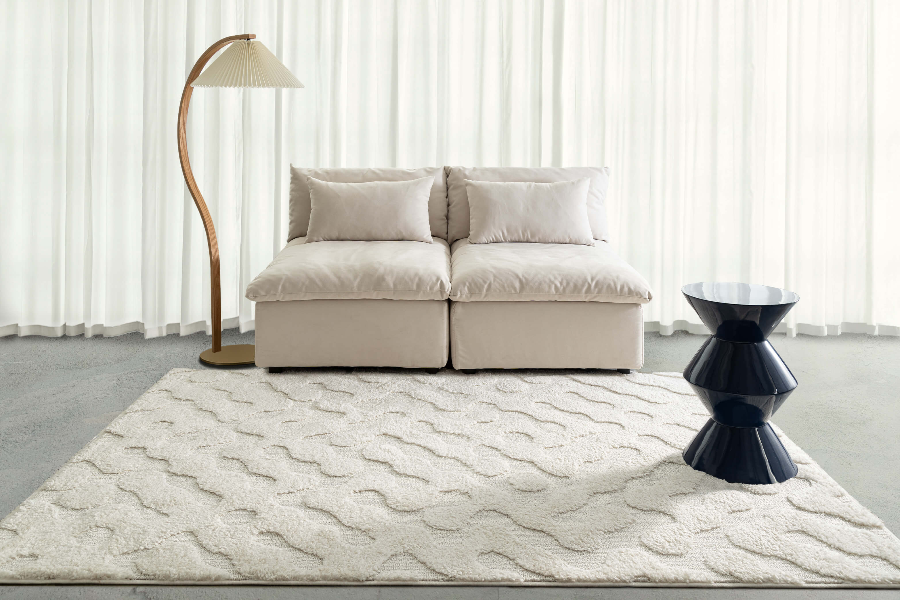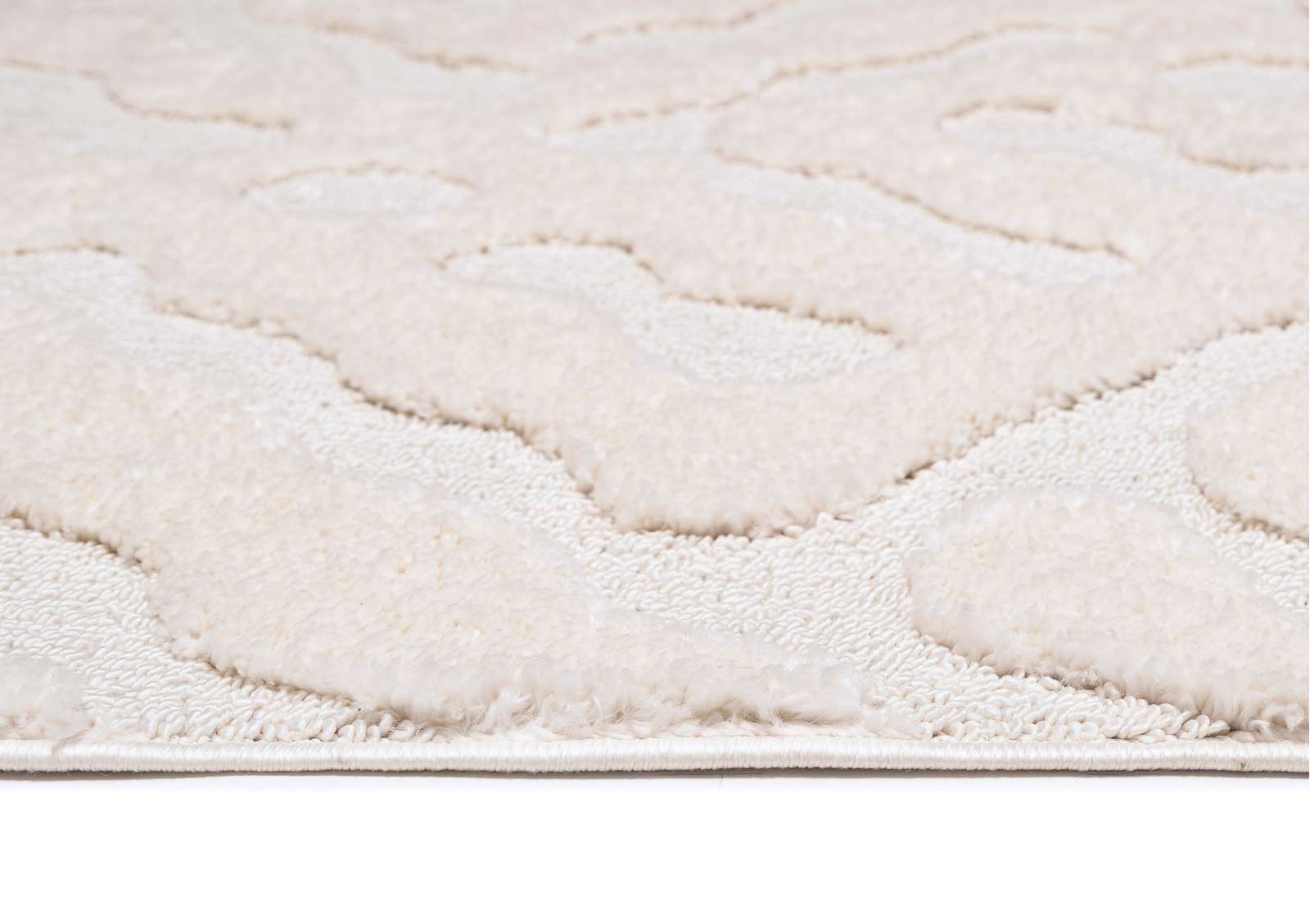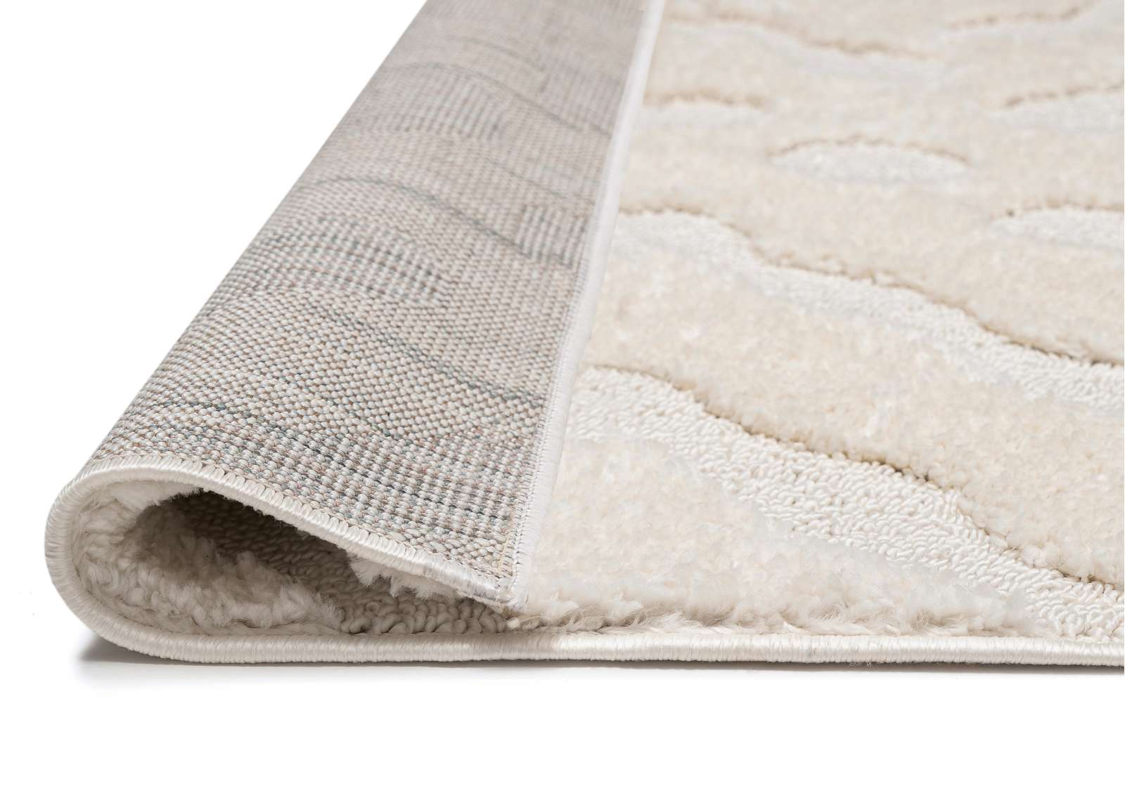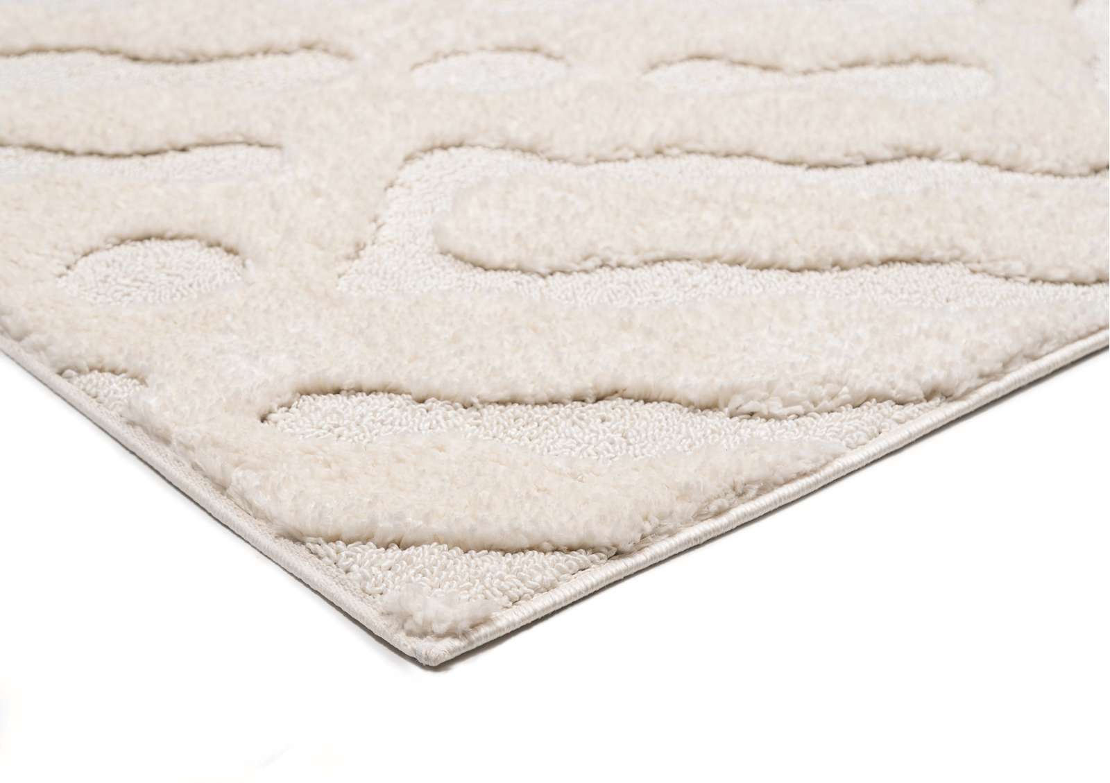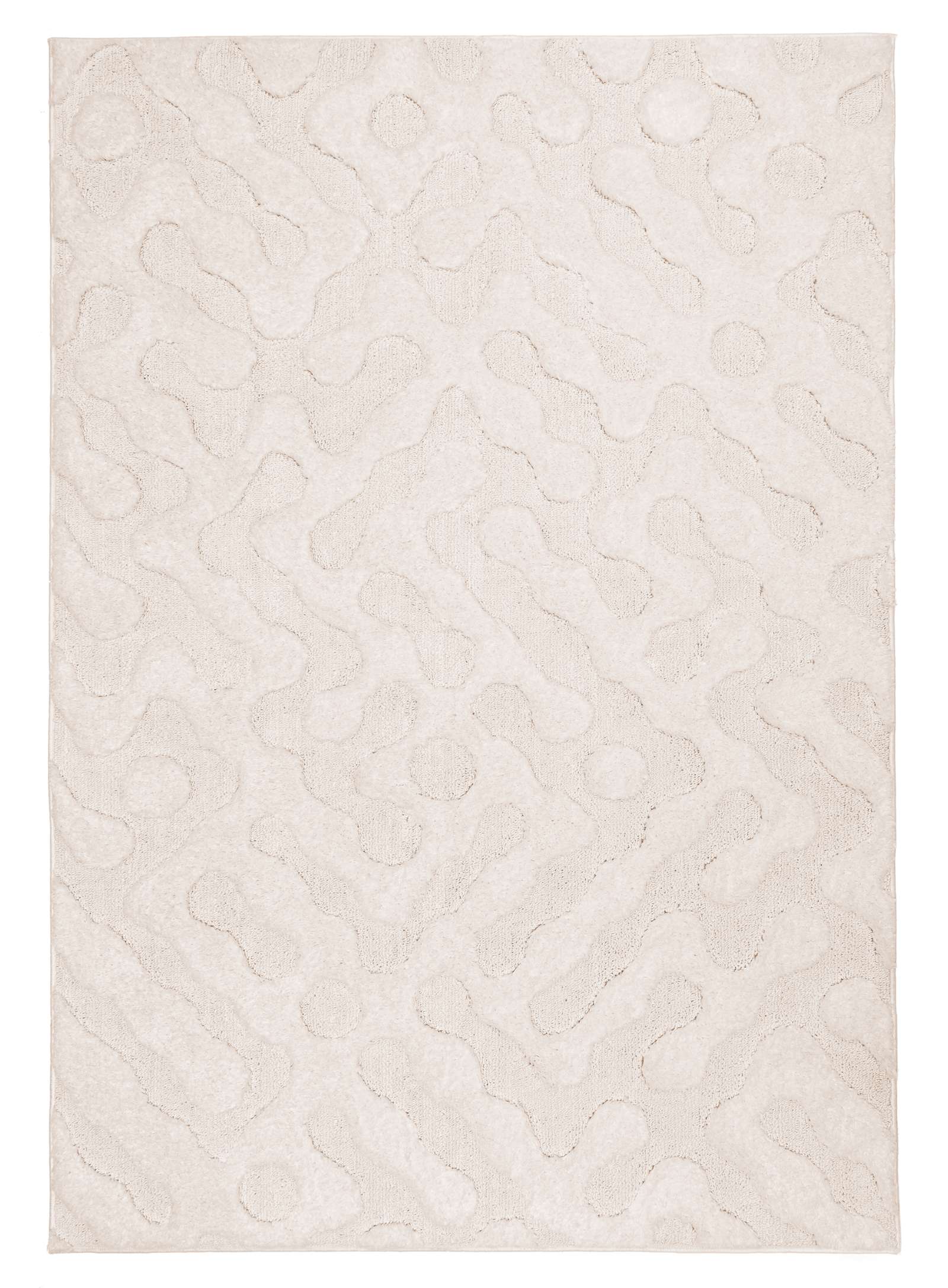 Noem Ivory Abstract Rug is a luxurious addition to any modern or minimalist style home. The rug features a unique abstract circle pattern with a high low pile variation and extra-dimensional texture. Made with 100% polypropylene fibres, it is both stain resistant and tough enough to withstand high-traffic areas, making it ideal for homes with kids and pets. Power loomed in Turkey and boasting a 15mm pile, this warm-based ivory and cream rug exudes elegance and style.