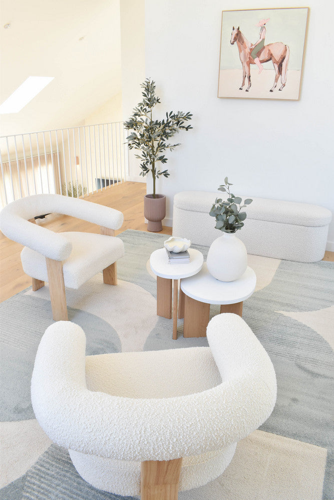 The Coco Frosted Blue Rug brings a calming modern touch to any interior with its blend of soft blue and cream tones. Its bold geometric pattern and subtle high-low texture create a balanced mix of simplicity and statement design. Made in Belgium from a luxuriously soft polypropylene pile, this rug offers plush comfort underfoot while remaining durable and easy to maintain. Ideal for living spaces and bedrooms, it adds serenity, warmth, and contemporary elegance to your home.