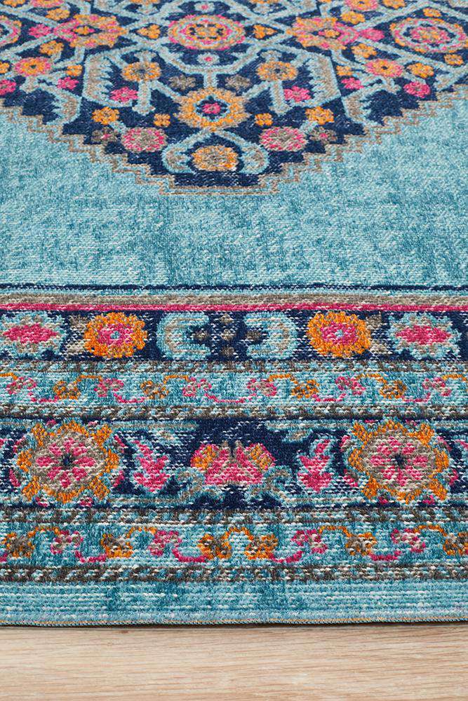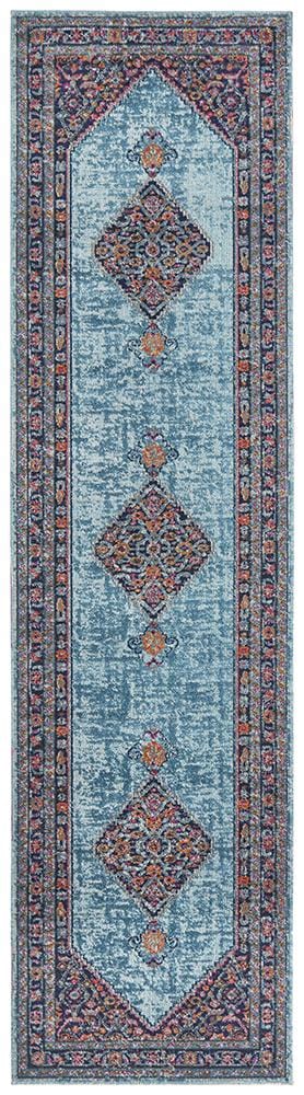 Power loomed for precision and durability, the Fethiye Blue Distressed Diamond Runner is tip sheared by hand to give a distressed finish that recreates the look of an authentic, vintage Persian rug that has been stonewashed and over-dyed for a modern look.