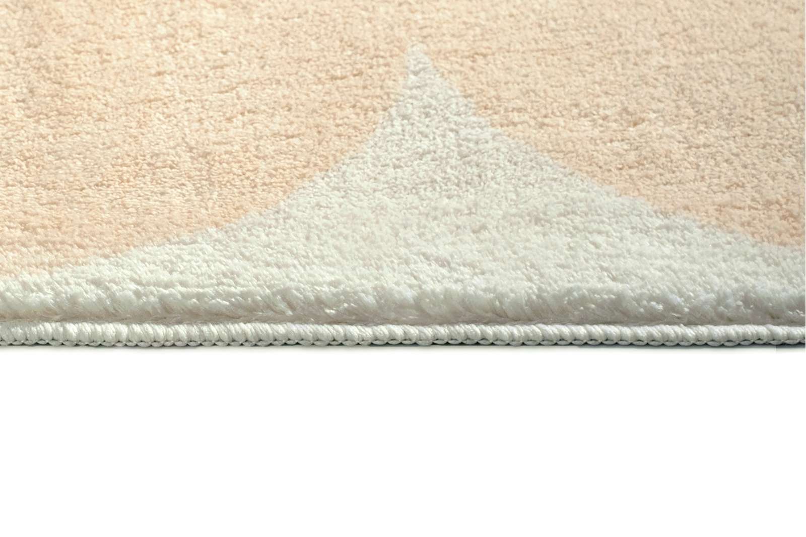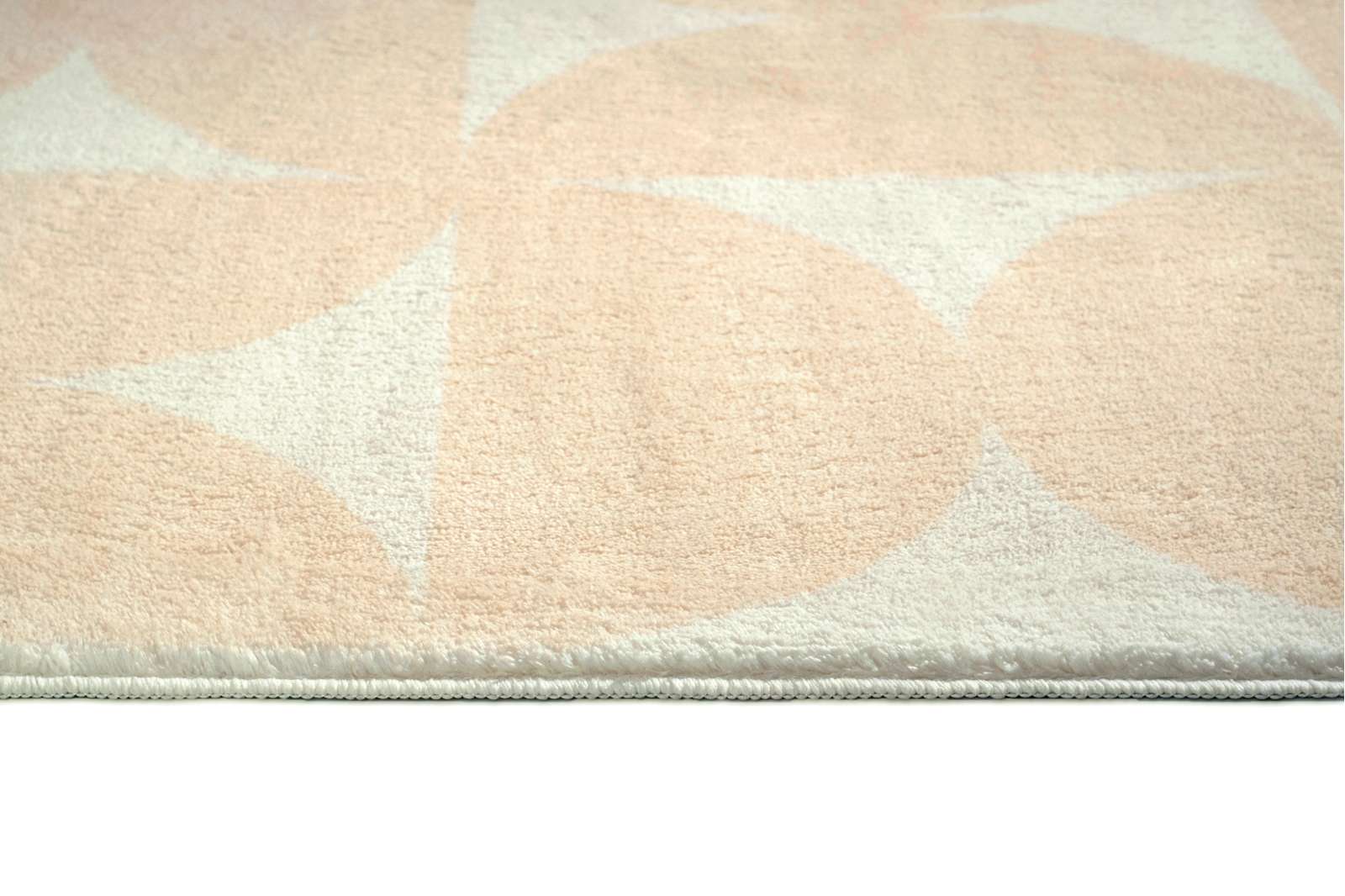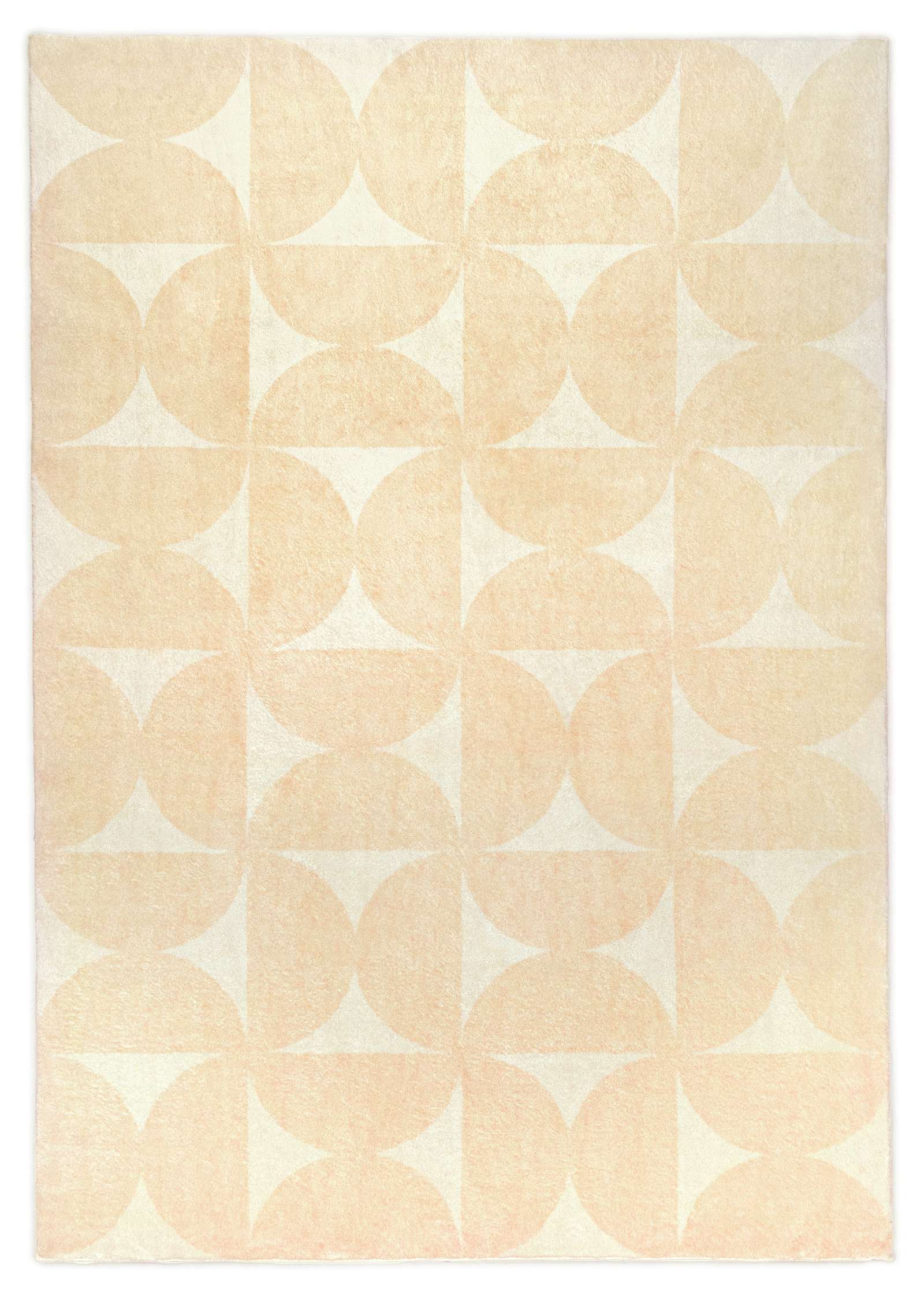 Beige brown in a retro semi-circle hourglass pattern on an ivory-based background. A uniquely modern and contemporary geometric rug design to accent any space and decor. A unique machine washable pile that is soft underfoot, adding extra warmth and comfort to your space. Silky smooth to the touch for a high-quality finish and luxurious feel. Stain-resistant and easy to clean, foldable for easy storage with a built-in non-slip underlay.