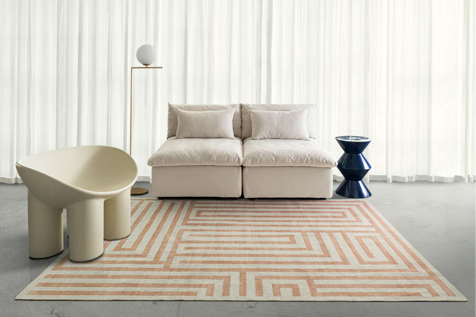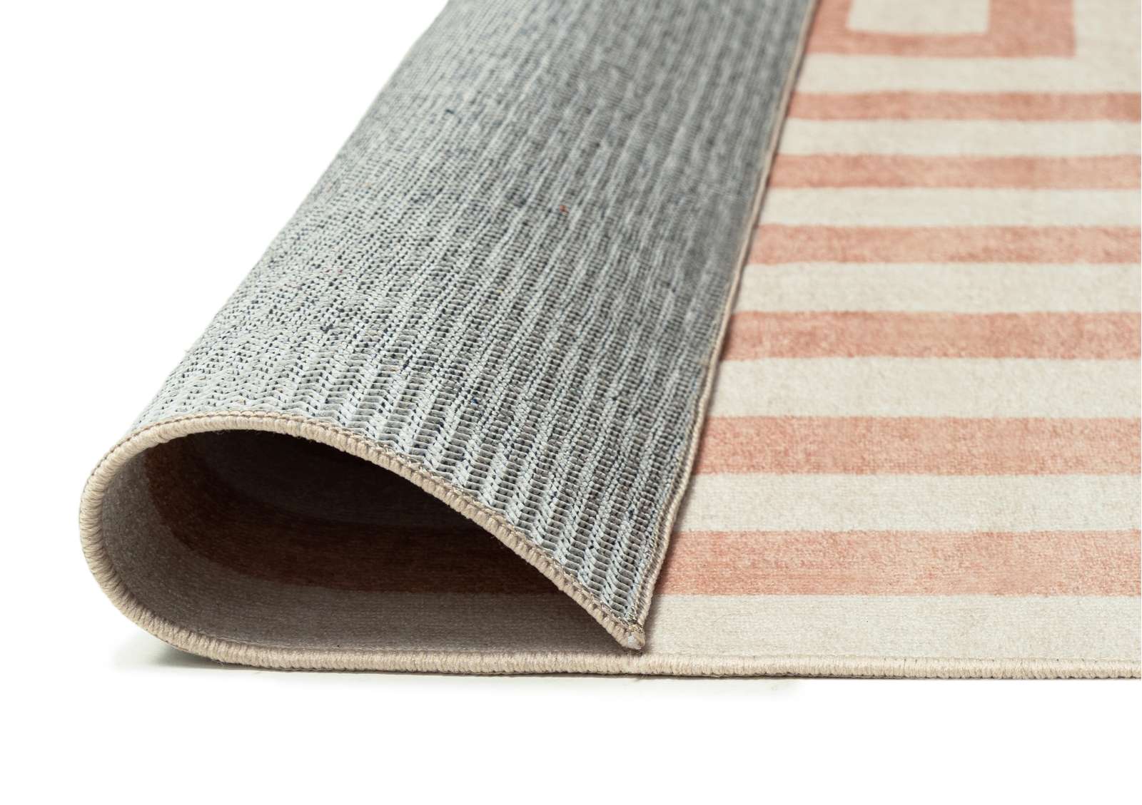 Makini is a smooth machine washable and foldable flatweave rug in a warm peach tone with a modern geometric line design. A versatile and timeless addition to any space.