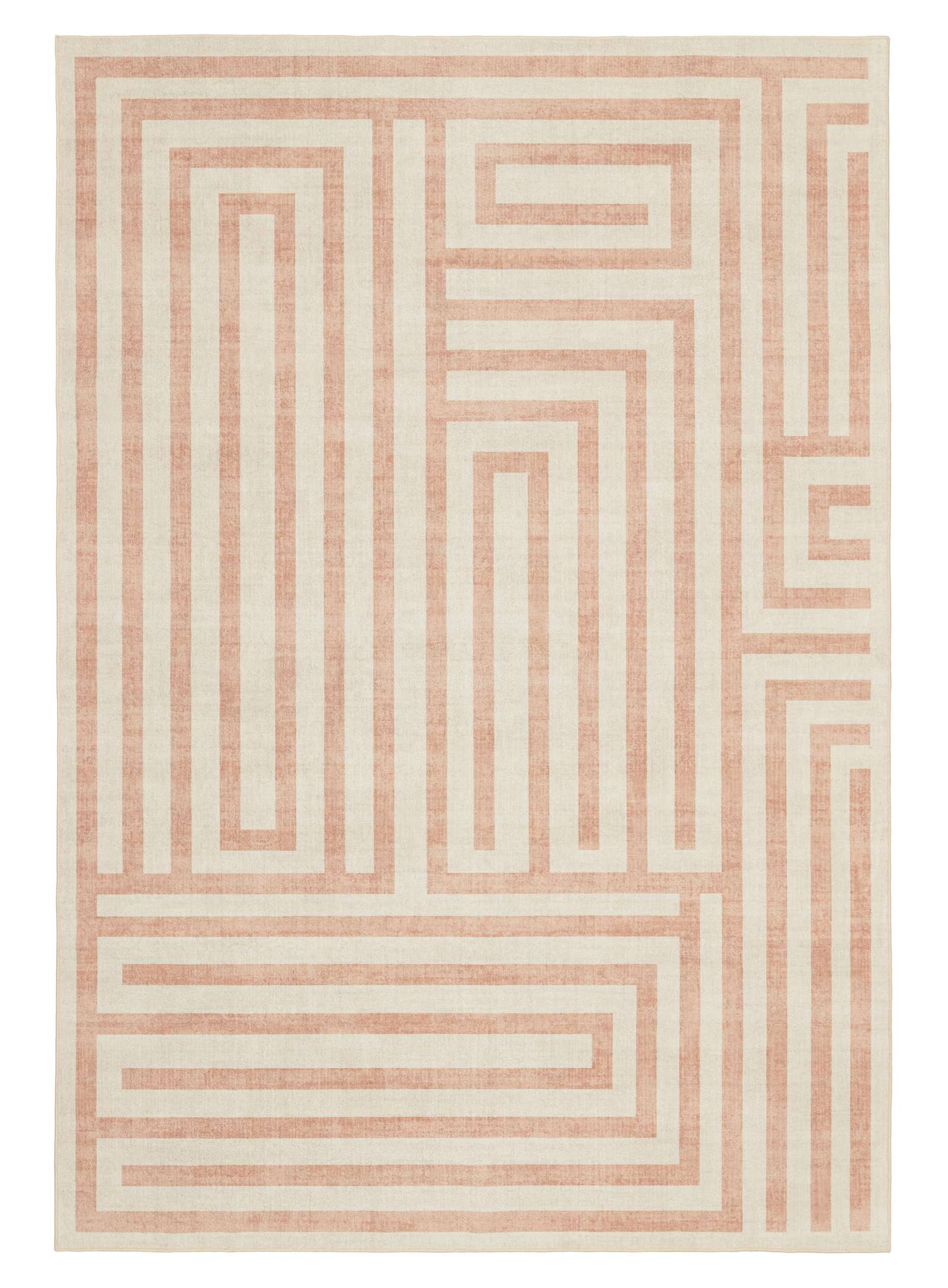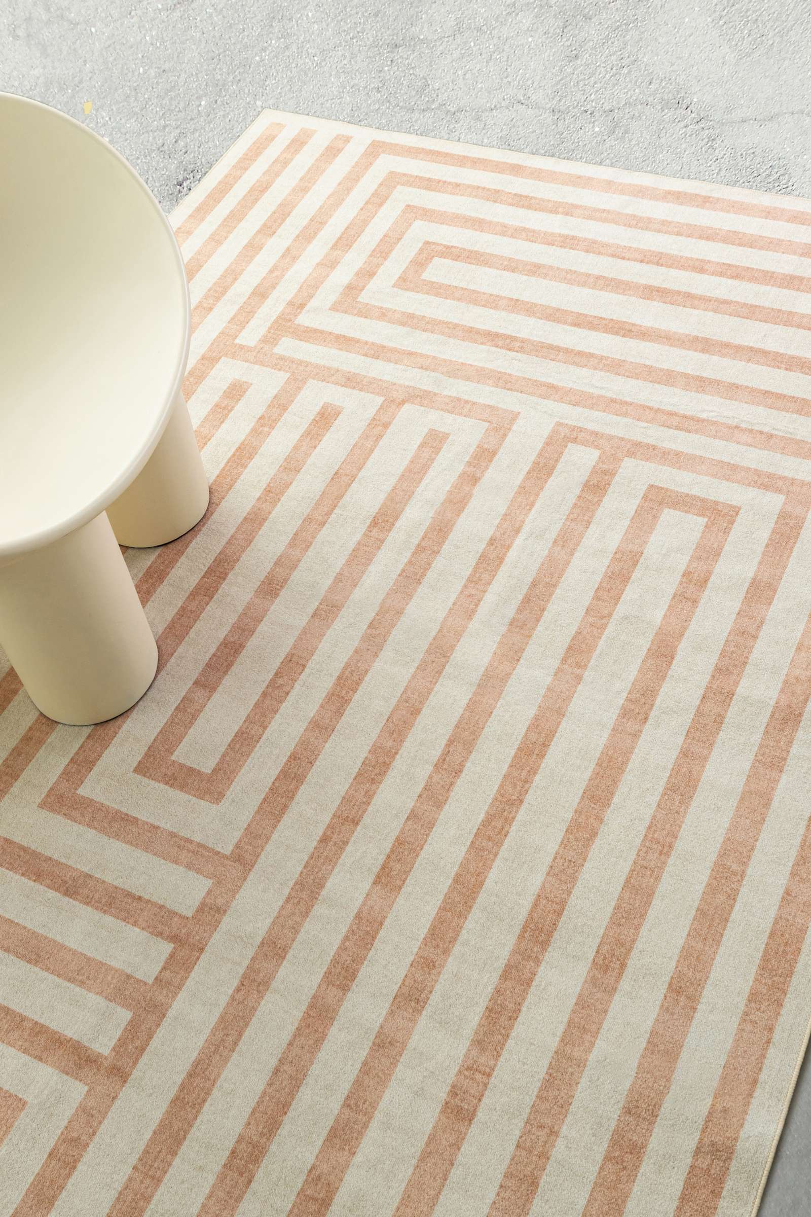 Makini Peach Geometric Washable Rug