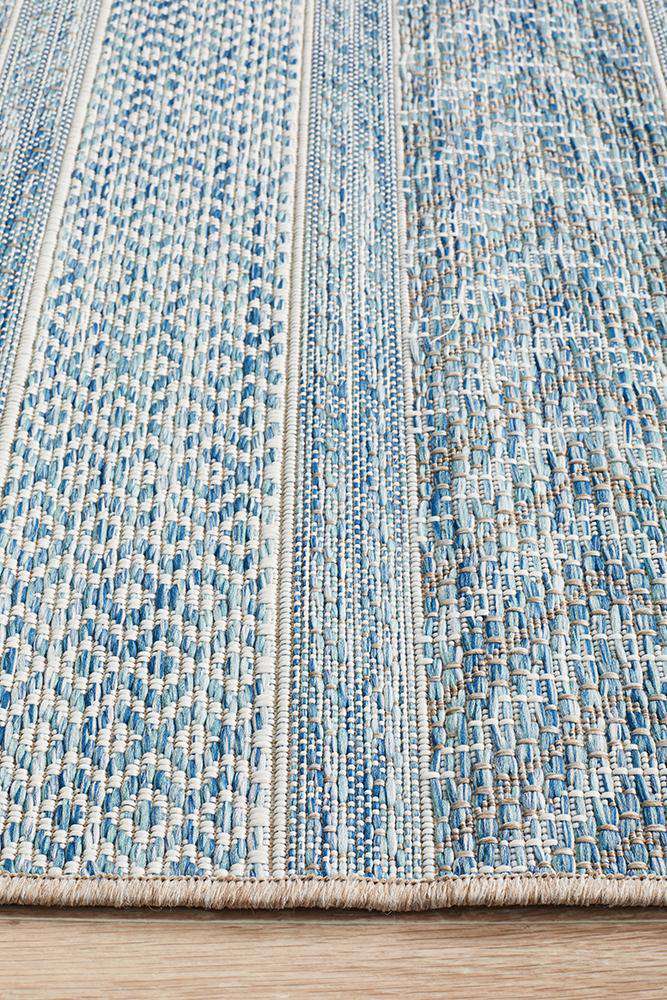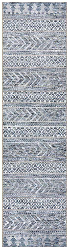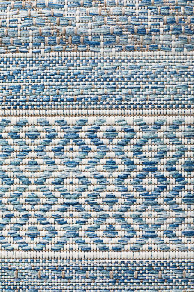 The Pylos Indoor/Outdoor Runner in Blue is the perfect decorating choice to impart texture and style onto your deck, porch or even inside your home.