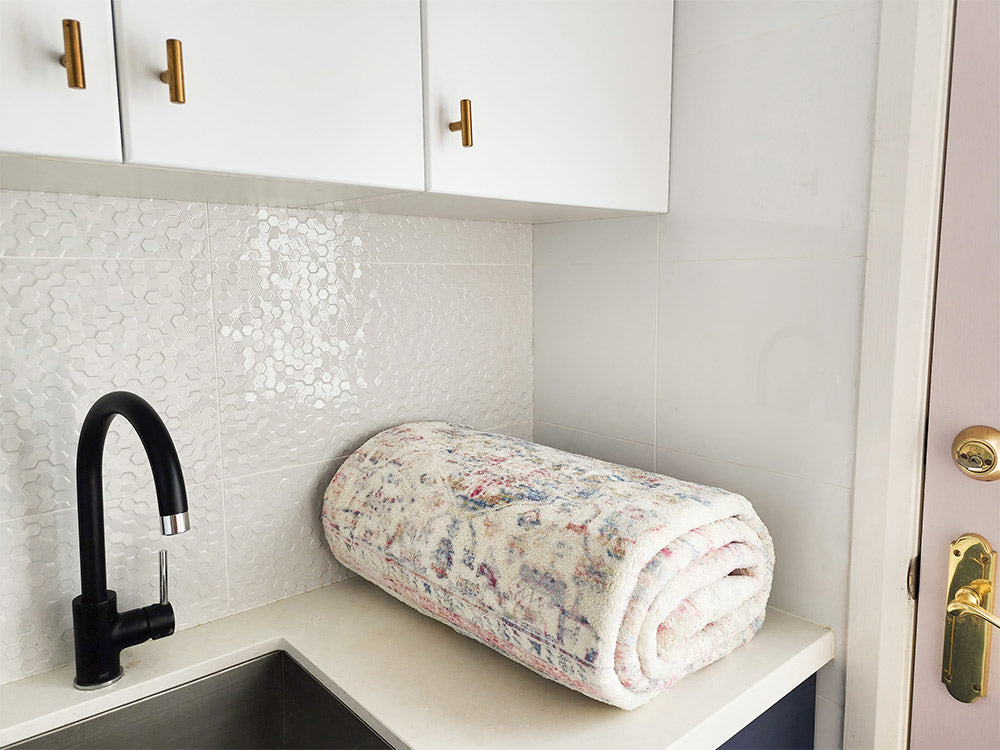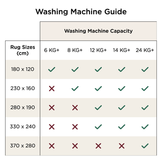 Cleaning results may vary depending on the type of stain. Blot spills promptly and wash by hand or machine as needed. Always check that your rug is machine-washable before proceeding and refer to our Washing Machine Capacity Guide before washing.